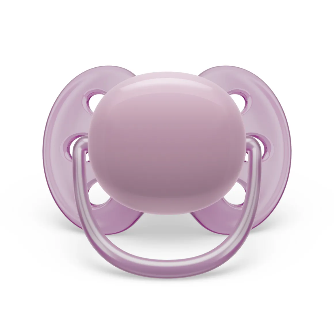 Il ciuccio Philips Avent più morbido per la pelle delicata del tuo bimbo – Confezione da 2 succhietti con tettarella simmetrica ortodontica senza BPA.