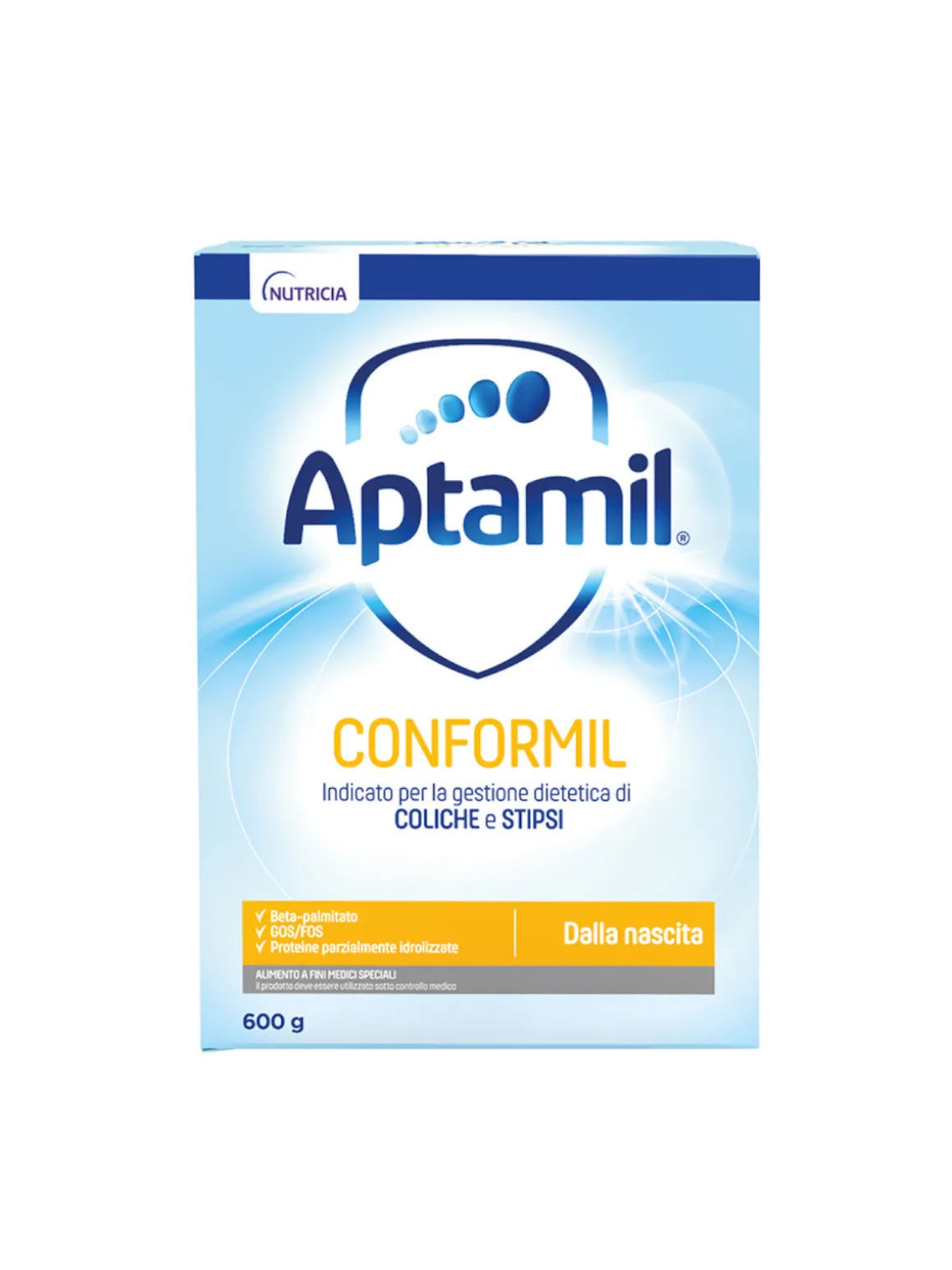 Latte formulato Aptamil per il regime alimentare del lattante in caso di problemi gastrointestinali minori quali coliche e stipsi.