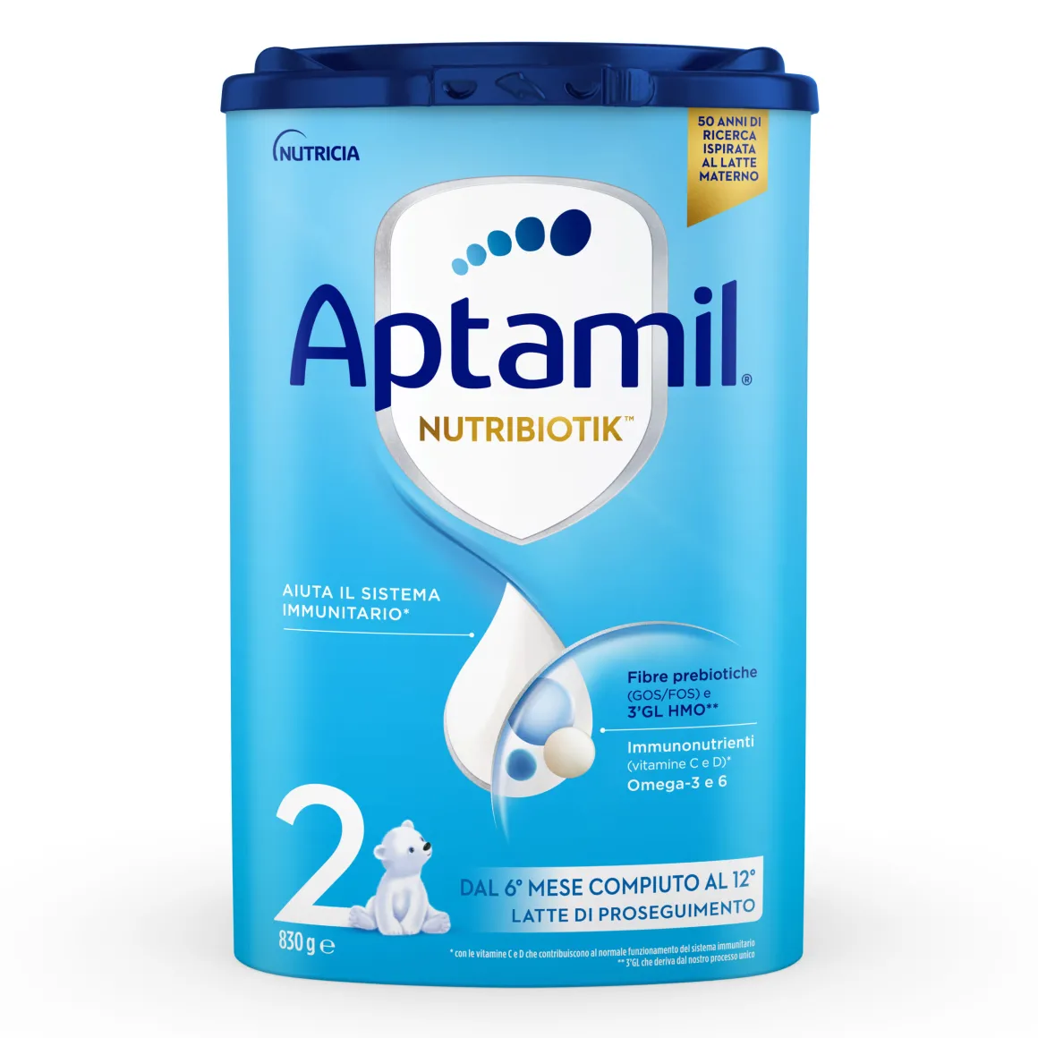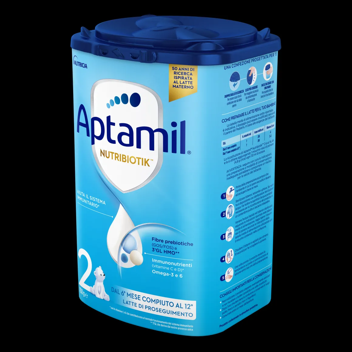 – APTAMIL Nutribiotik 2 è un LATTE DI PROSEGUIMENTO IN POLVERE nel formato da 830g.