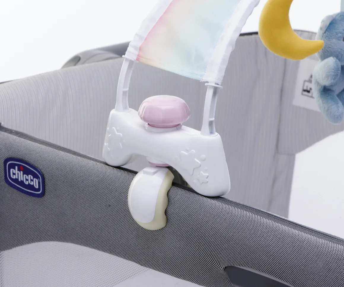 L’arco Rainbow Sky si applica facilmente al lettino e crea una magica atmosfera che accompagna il tuo bambino nel momento della nanna.