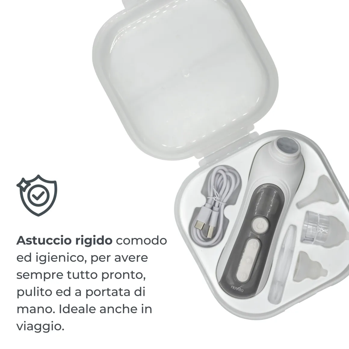 Con 5 livelli di intensità di aspirazione, è possibile adattare la potenza ad ogni necessità, dal semplice raffreddore alla congestione più ostinata, senza irritare le mucose nasali e senza alcun fastidio per il bambino. Per un sollievo rapido e delicato.