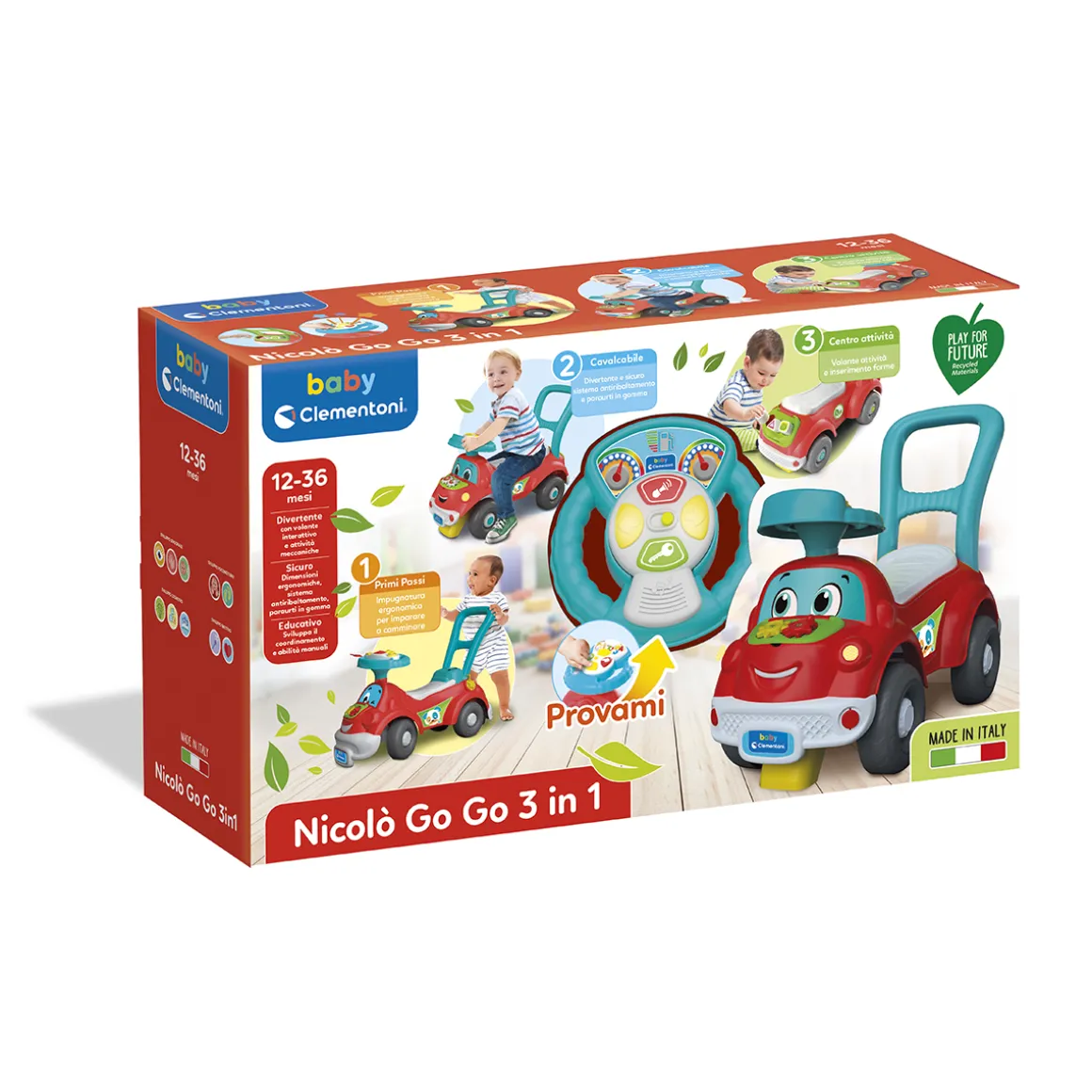 Baby clementoni – nicolò go go 3 in 1 – macchinina primi passi