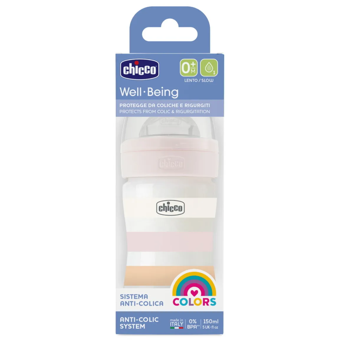 Il Biberon Well-Being Chicco 150ml in plastica garantisce la massima praticità grazie alla forma ergonomica, è adatto per la sterilizzazione ed è lavabile in lavastoviglie.