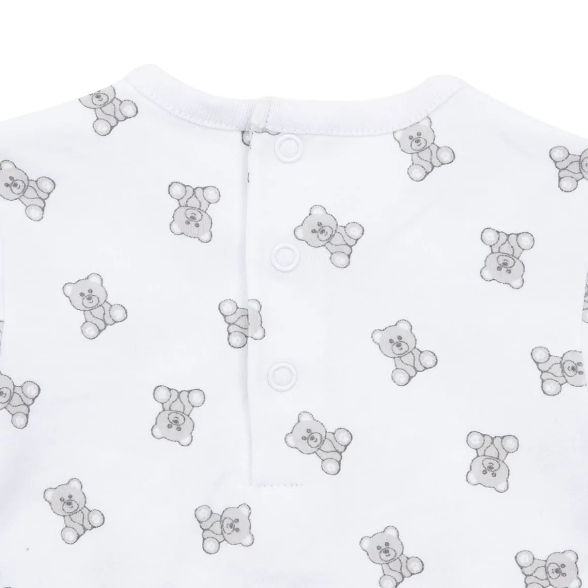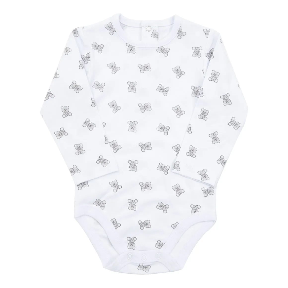 Body manica lunga da bambina. Il capo si sviluppa in total bianco con stampa allover a tema “orsetti”. La vestibilità è morbida e pratica grazie ai bottoni a clip sulla schiena e sul cavallo. Accessori non in vendita. La confezione contiene solo il capo d’abbigliamento