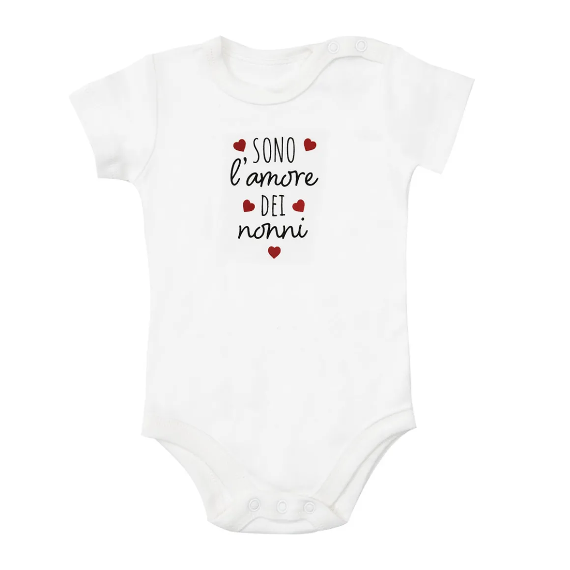 Body mezza manica interlock unisex. Il capo si sviluppa in total bianco con stampa piccola sul davanti. La vestibilità è morbida e pratica grazie ai bottoni a clip sul cavallo e ad altezza girocollo. Accessori non in vendita. La confezione contiene solo il capo d’abbigliamento