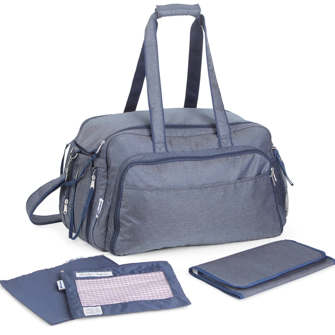 Contiene 2 sacchi biancheria e 5 sacchetti per corredino ospedale con portanome. Tasca scarpe separata, separatore interno amovibile con multitasche.