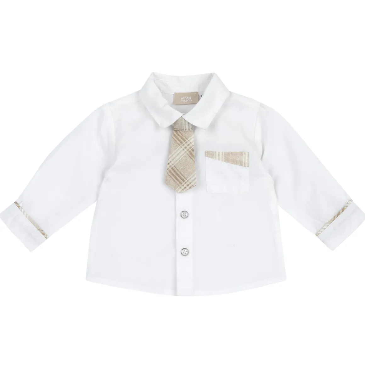 CAMICIA BAMBINO: camicia a maniche lunghe con cravattino. Questo capo Chicco è lavabile in lavatrice, per un’igiene elevata