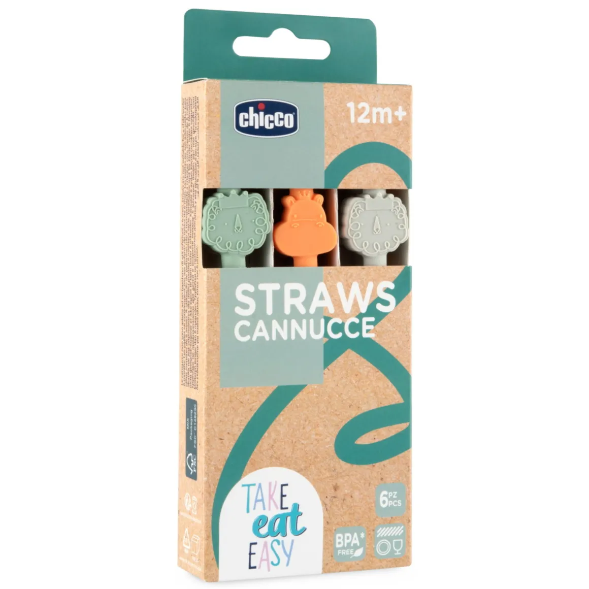 Le cannucce in silicone Chicco 12m+ sono morbide, flessibili e colorate, con simpatici leoni e ippopotami.