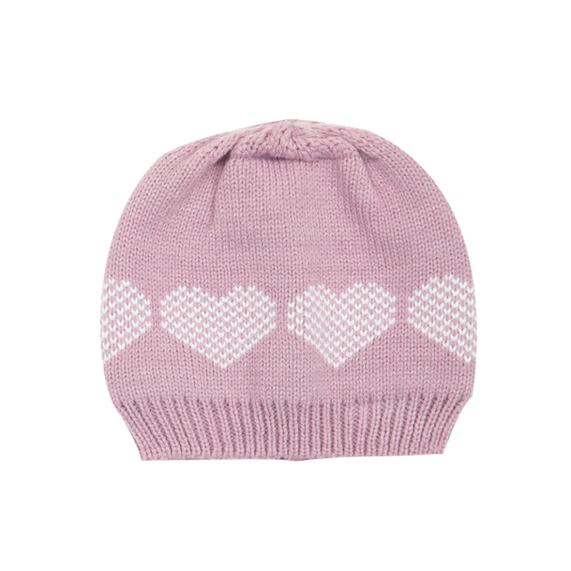 Cappellino tricot da bambina. La cuffia si presenta in differenti tonalità di rosa con trama a cuori. La vestibilità è morbda e pretica. Accessori non in vendita. La confezione contiene solo il capo d’abbigliamento