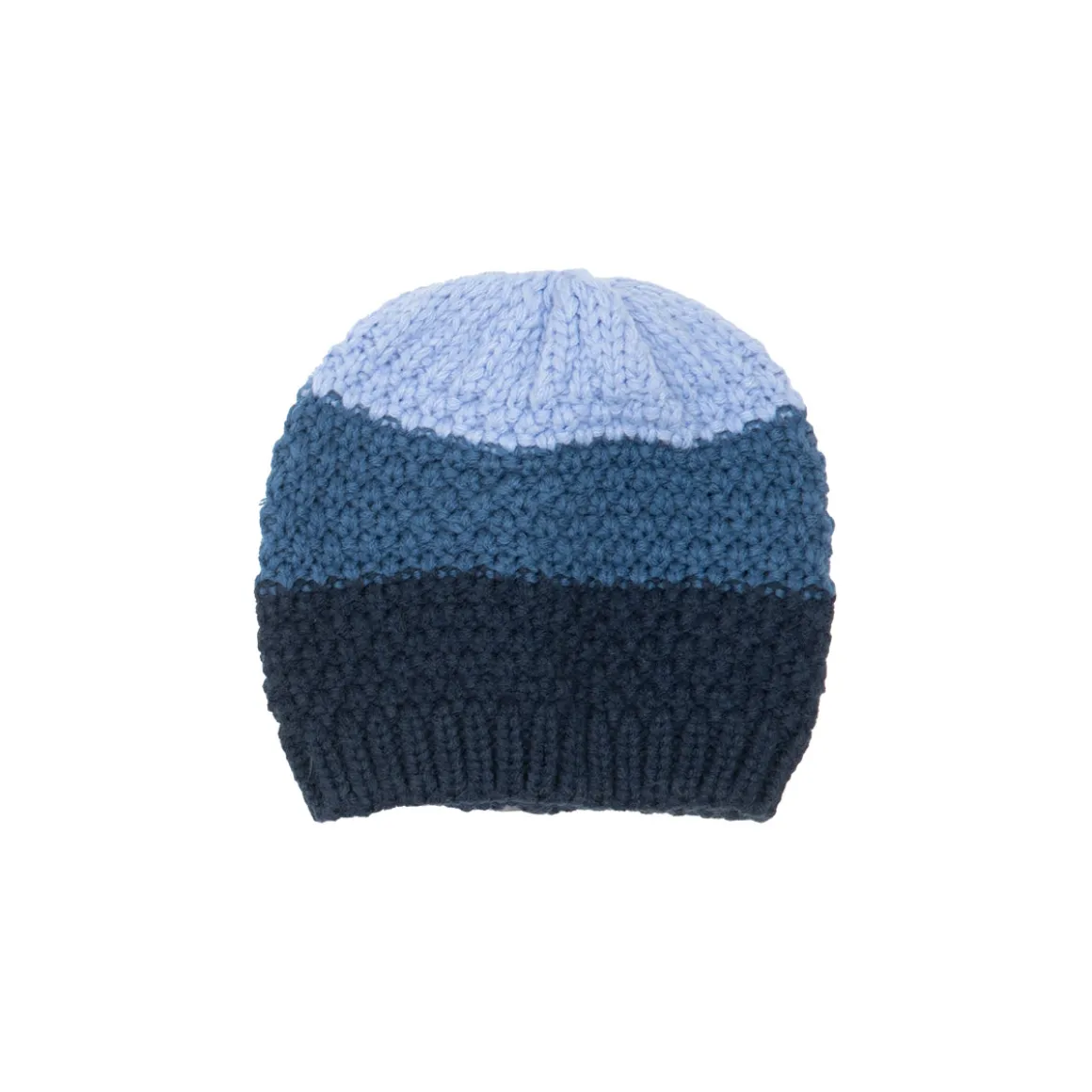 Cappellino tricot da bambino. La cuffia si presenta in tre differenti tonalità di blu. La vestibilità è morbda e pretica. Accessori non in vendita. La confezione contiene solo il capo d’abbigliamento
