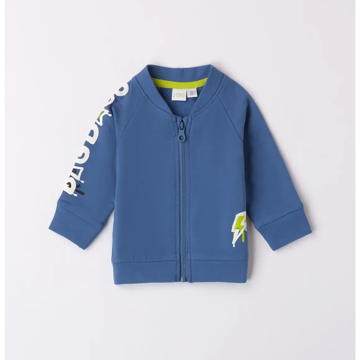 Felpa per bimbo neonato iDO 1-24 mesi realizzata in felpa stretch di cotone invernale. Il modello presenta apertura frontale con zip e polsini elasticizzati sul fondo e sulle maniche. L’articolo è realizzato in fantasia tinta unita con scritte e stampe sulla manica e sulla schiena. Manica raglan. Scopri tutta la selezione di Felpe bimbo iDOMini!