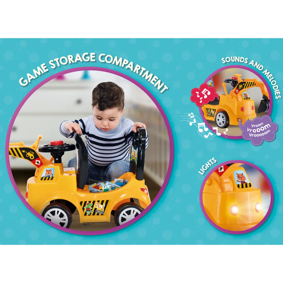 Un’originalissima ruspa cavalcabile e sonora! Robusta e resistente permette anche ai più piccoli di fare tanti divertenti giochi d’imitazione! .