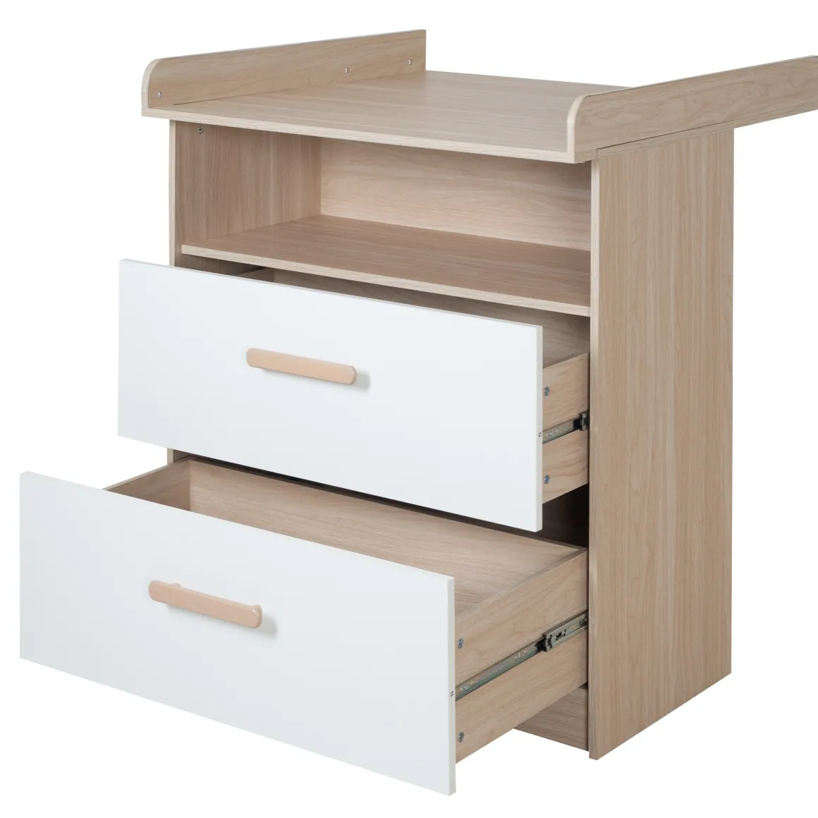 Cassettiera fasciatoio, 2 cassetti + 1 ripiano naturale bianco – roba