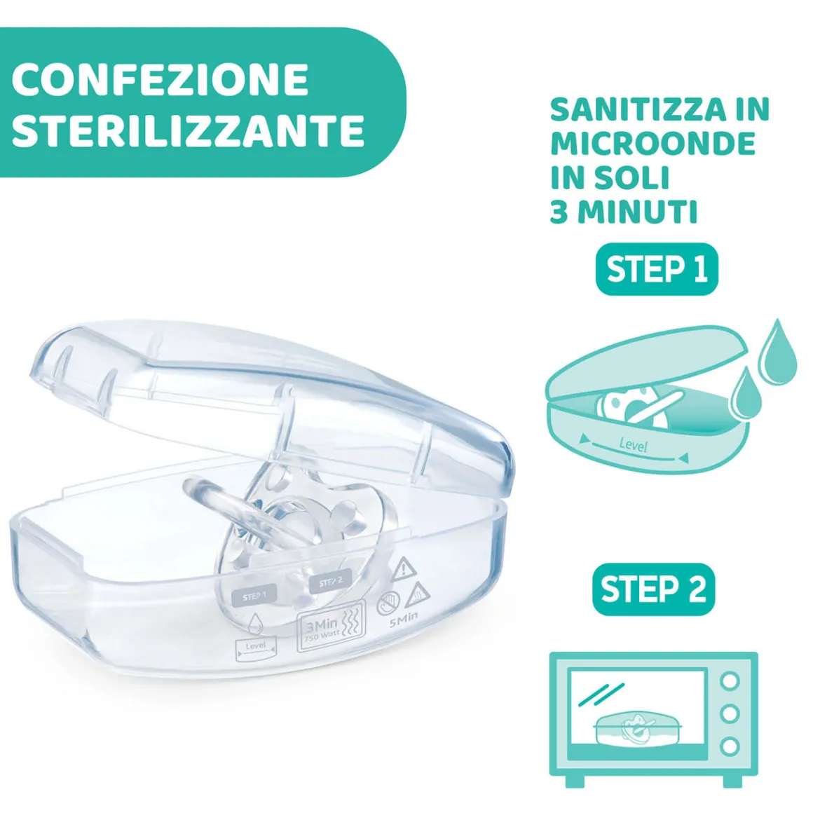 Gommotto realizzato completamente in morbido silicone, supporta la respirazione fisiologica e favorisce il corretto sviluppo della bocca del bambino. Esclusiva PhysioForma del gommotto Chicco: forma anatomico-funzionale esclusiva di tutti i ciucci Chicco, studiata per favorire e stimolare le funzioni vitali della bocca durante la suzione non nutritiva mantenendo il posizionamento fisiologico della lingua, alta sul palato. Extra morbido e delicato sulla pelle, Physioforma® Luxe è il primo ciuccio dotato di un moderno scudo testurizzato e caratterizzato da colori opachi diversi a seconda della misura.