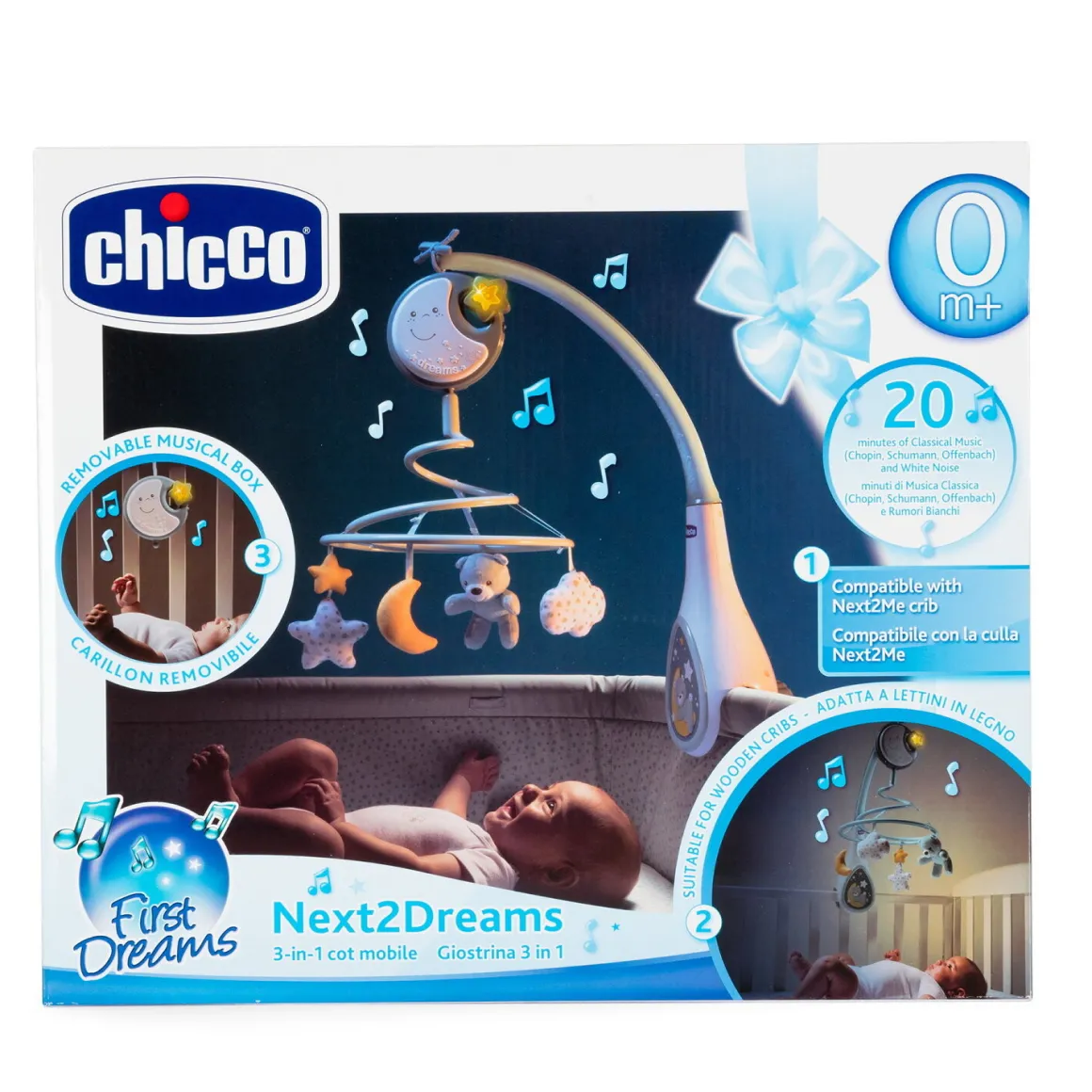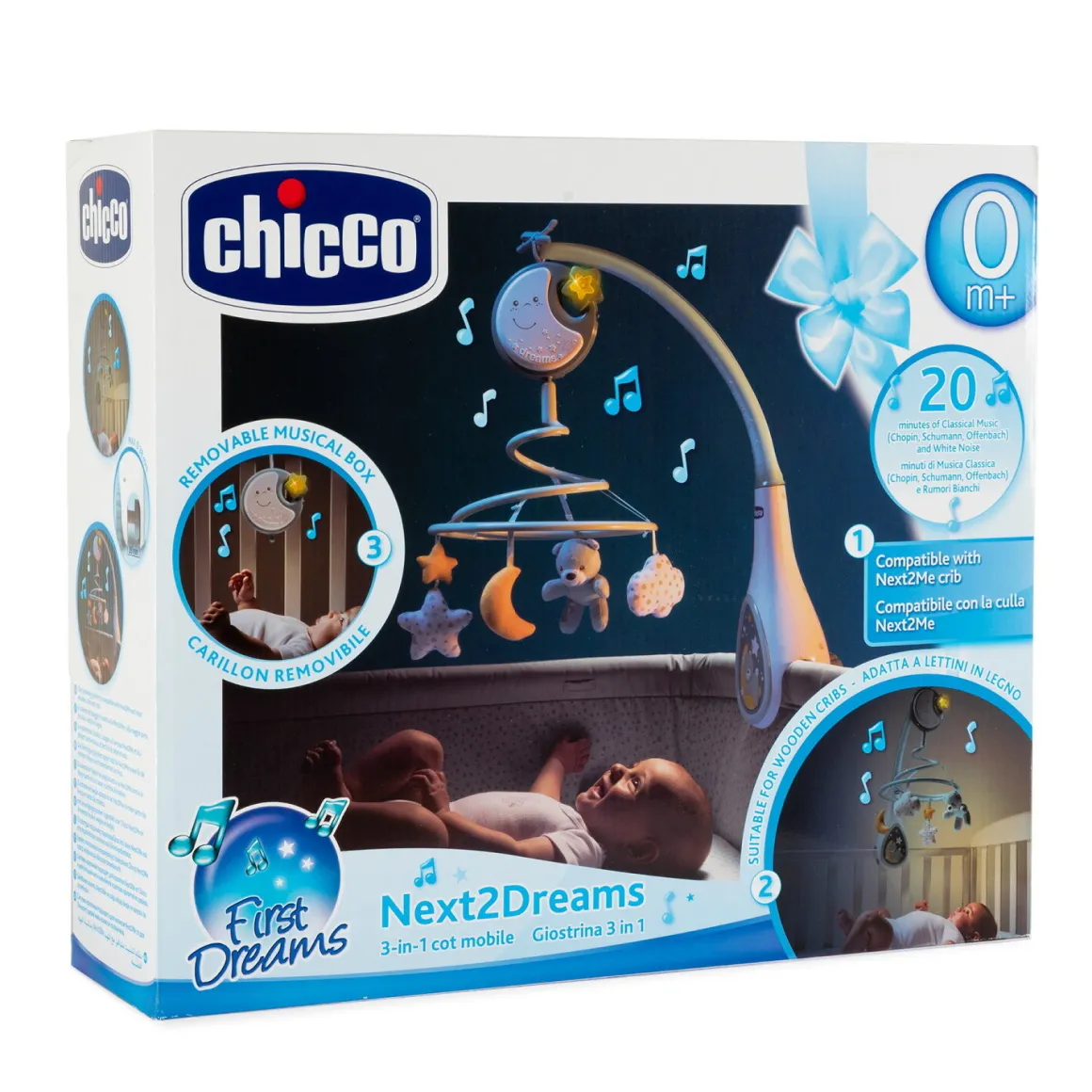 Next2Dreams di Chicco è l’alleato del sonno di ogni bambino, una giostrina musicale con luci e morbidi pendenti da portare sempre con te, anche in viaggio.