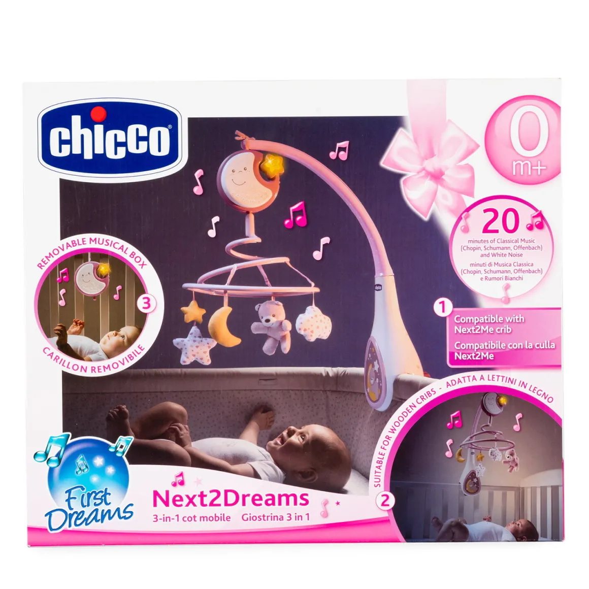 Culla i sogni de tuo bambino con la giostrina musicale Next2Dreams di Chicco, un carillon multifunzionale che gli regalerà sonni quieti e riposanti.