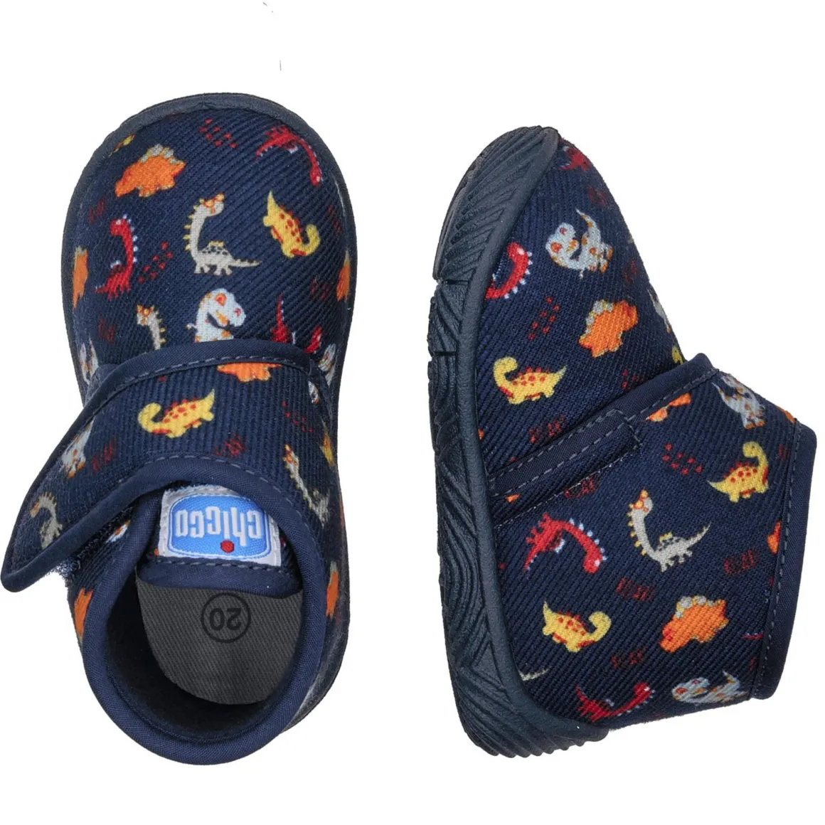 Pantofola Chicco con velcro per facilitare la calzata. Adatta per uso interno/esterno casa. Le pantofole hanno la suola “Flex-zone”, linee di flessione per garantire la naturale flessibilità del piede