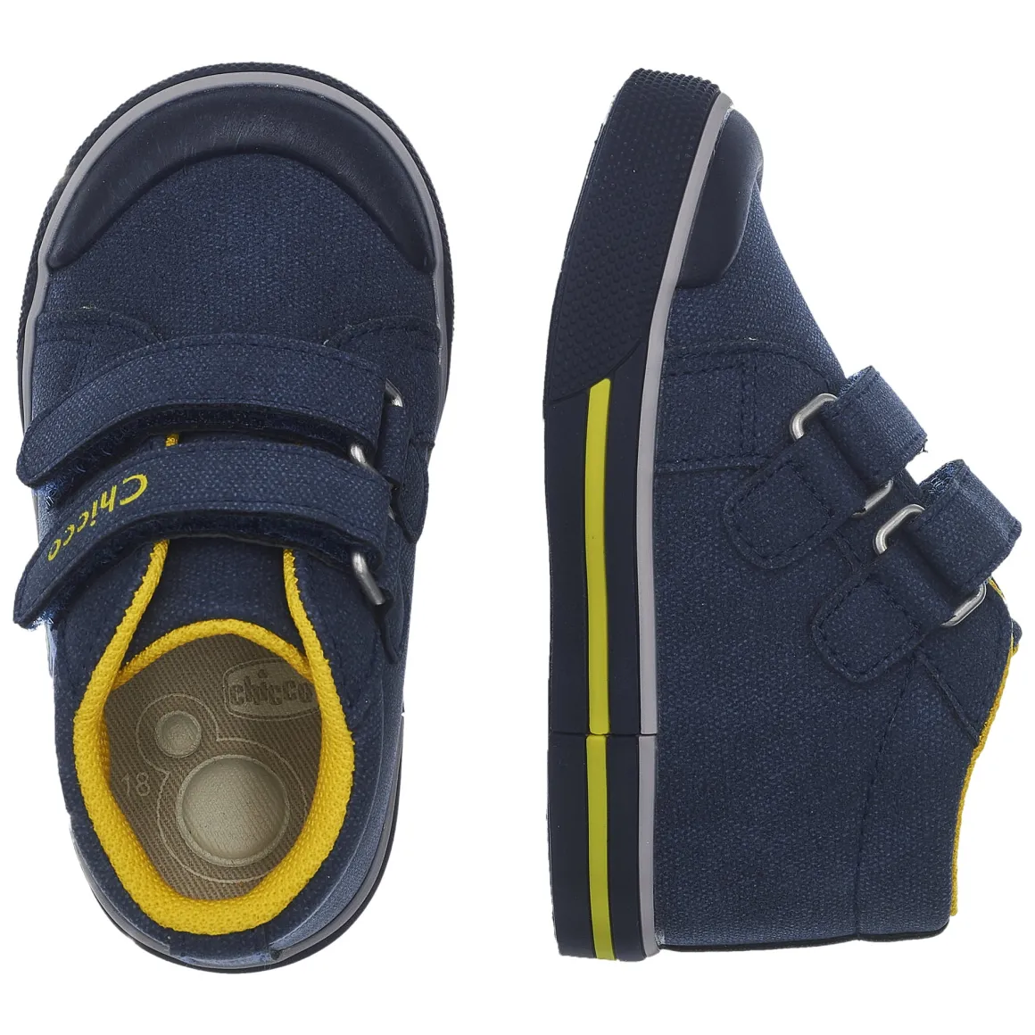 Polacchino Chicco per bambino con doppio velcro, arricchito da un simpatico dinosauro. Ha il sottopiede “Impronta Naturale Chicco”: sottopiede a spessori diversificati che stimolano la naturale formazione dell’arco plantare e la “Flex-zone”: suola con linee di flessione per garantire la naturale flessibilità del piede