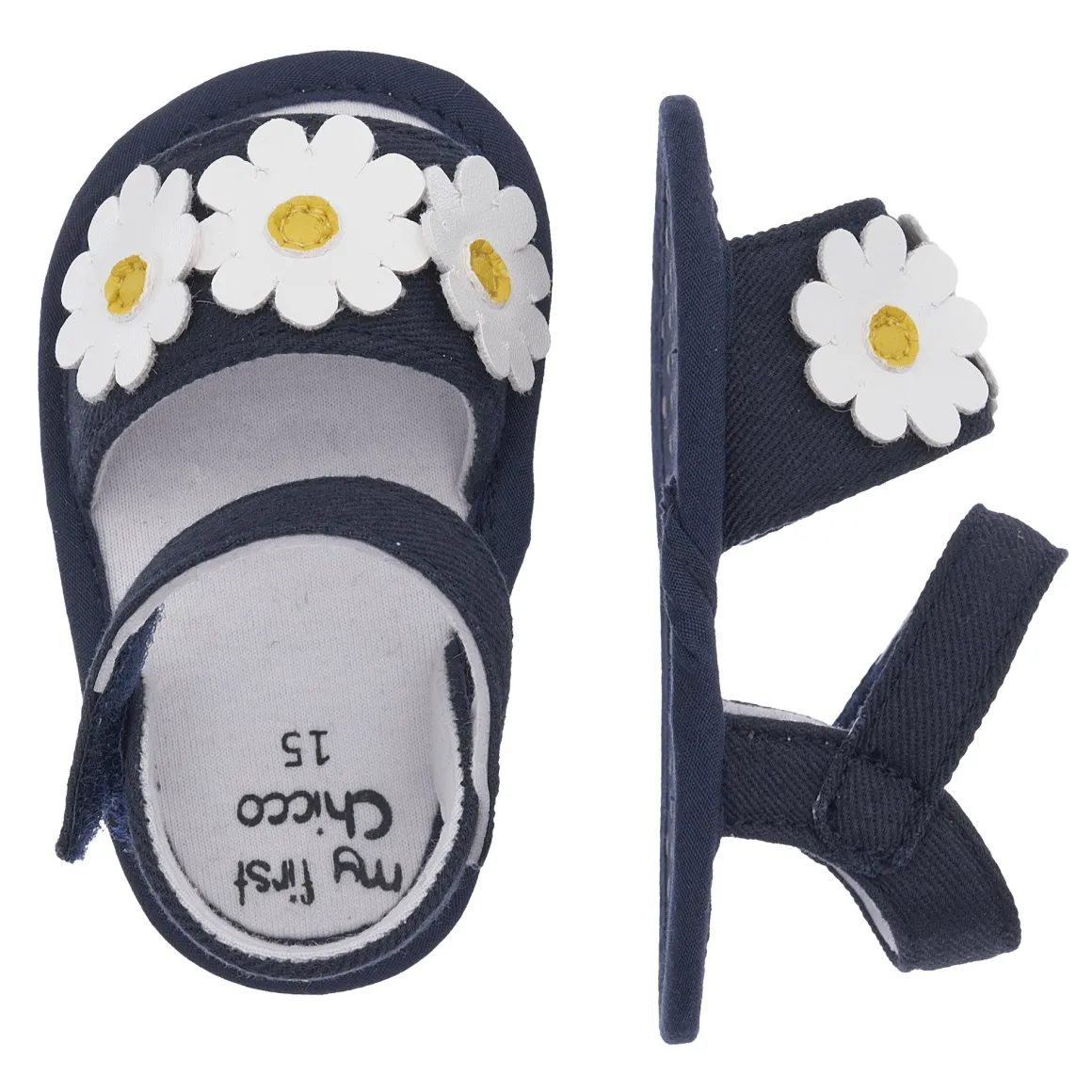 Sandalo Chicco per neonata con velcro, per facilitare la calzata. Impreziosita da margherite, adatto per tutti i giorni