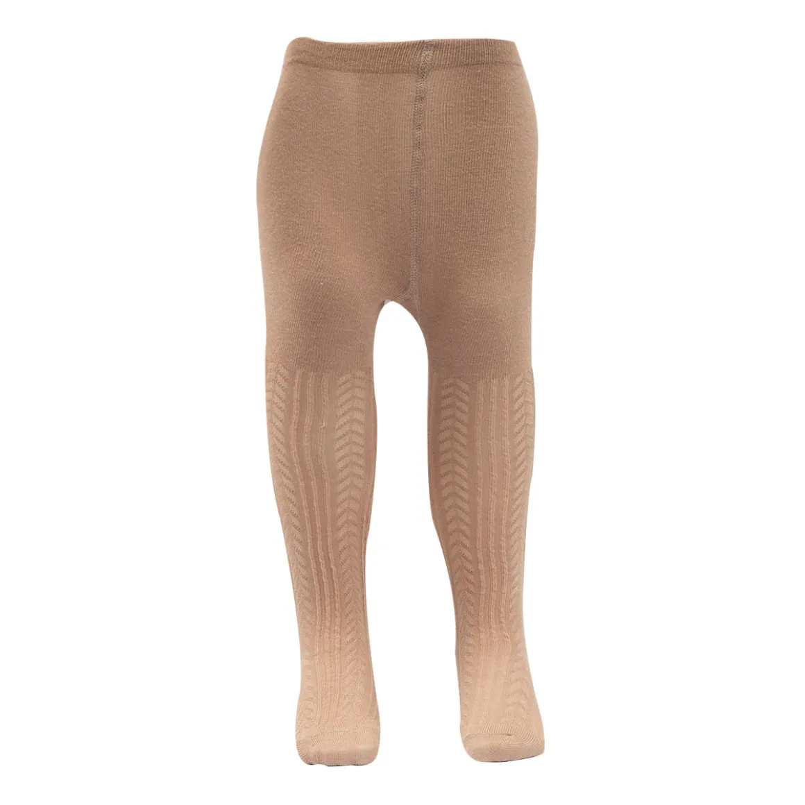 Collant da bambina. Il capo si presenta in tinta unita beige con trama lavorata. Le calze risultano comode e morbide. Accessori non in vendita. La confezione contiene solo il capo d’abbigliamento
