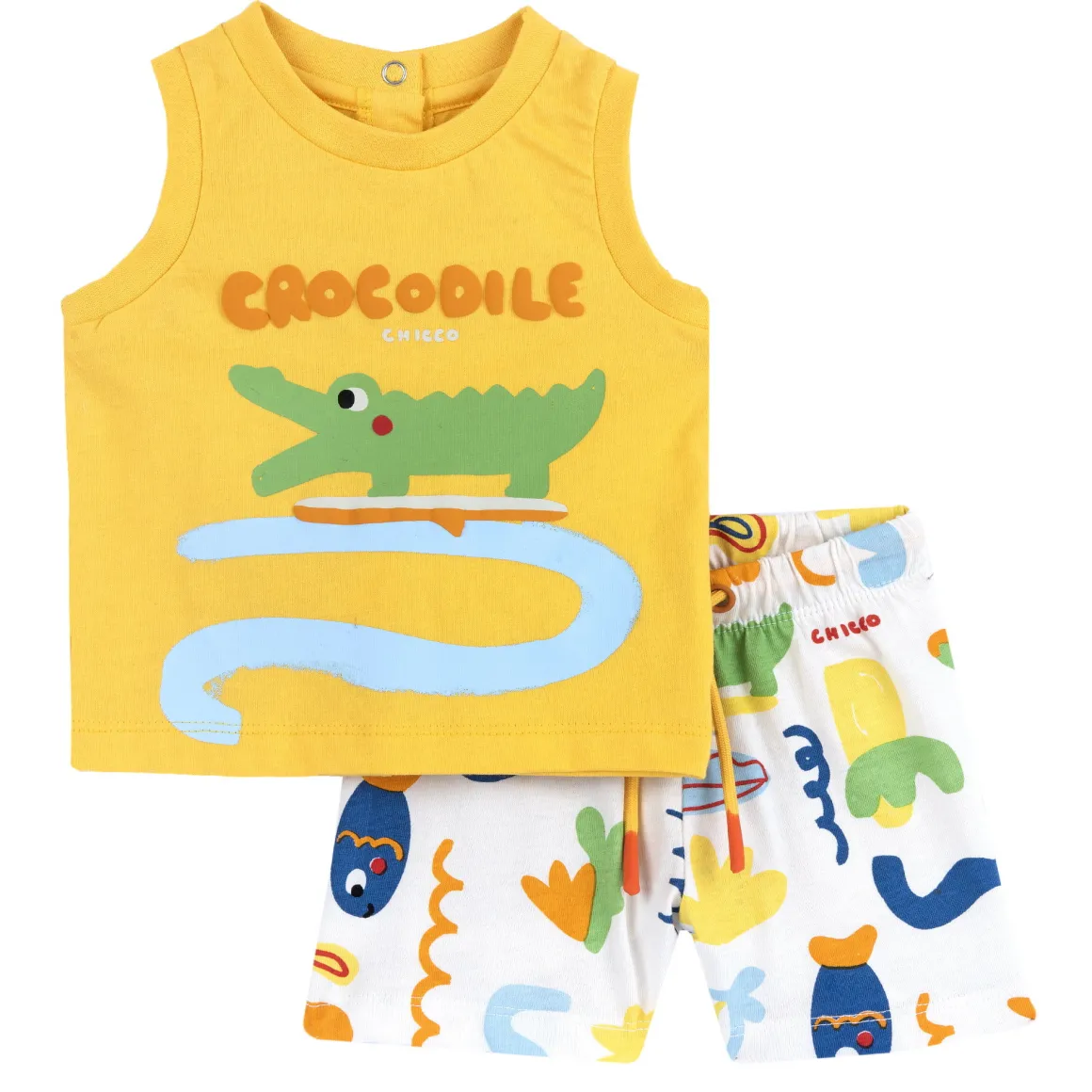 COMPLETO BAMBINO: Comodo e pratico completo in cotone Chicco composta da pantaloncino e canottiera, ideale per un abbigliamento casual e pratico per il tuo bambino. Questi capi Chicco sono lavabili in lavatrice, per un’igiene elevata