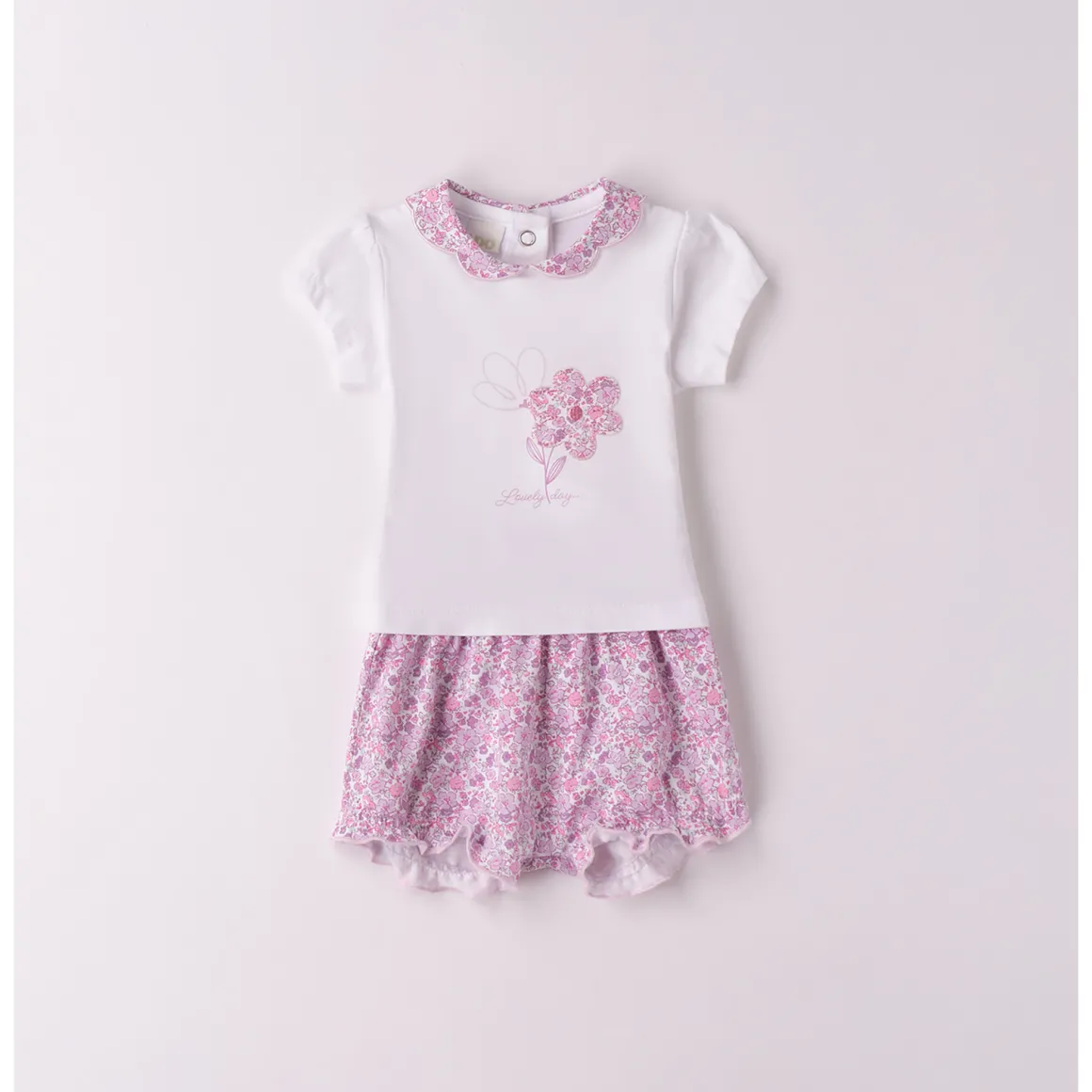 Completo neonata iDO 1-24 mesi realizzato in jersey stretch di cotone. La maglietta ha l’apertura dietro con bottoni a pressione, stampa frontale e colletto a contrasto. Le culotte hanno vita elasticizzata e fantasia allover. Scegliendo i nostri prodotti in cotone, sostieni il nostro investimento nella missione Better Cotton. La fornitura di questo prodotto avviene tramite un sistema di bilancio di massa e potrebbe non contenere Better Cotton. Leggi di più su bettercotton.org/massbalance