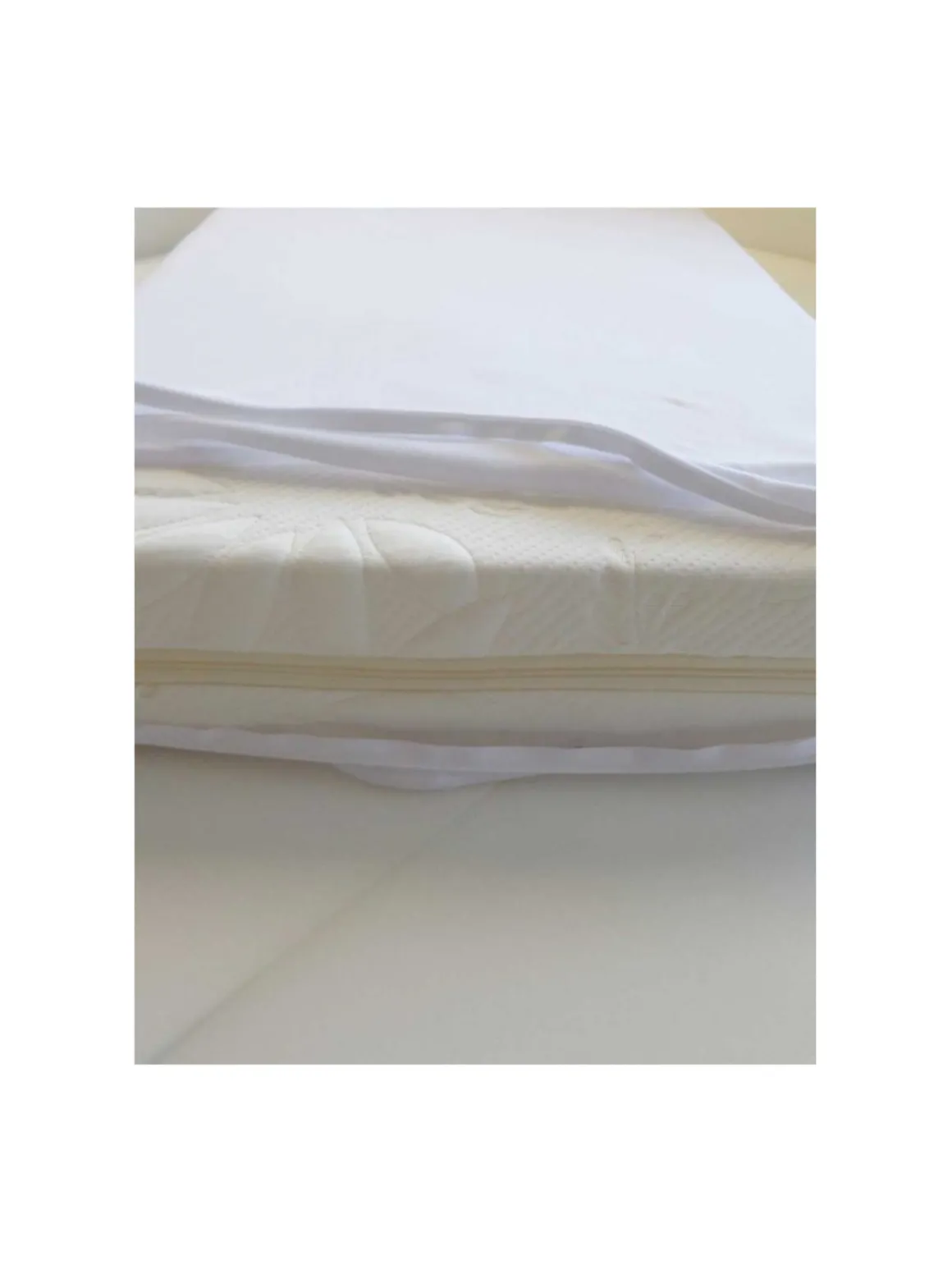Pratico coprimaterasso letto a sacco dotato di 3 cerniere laterali. 100% jersey di cotone ideale per isolare il bambino dal materasso.