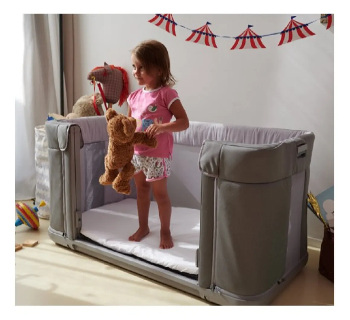 La culla è dotata di un sistema di aggancio semplice e sicuro con 2 cinture. Adatta alla maggior parte dei letti, compresi quelli con cassetti, grazie ai piedini pieghevoli e alla regolazione in altezza a 6 livelli. Può essere anche usata come una culla indipendente, staccata dal letto di mamma e papà.