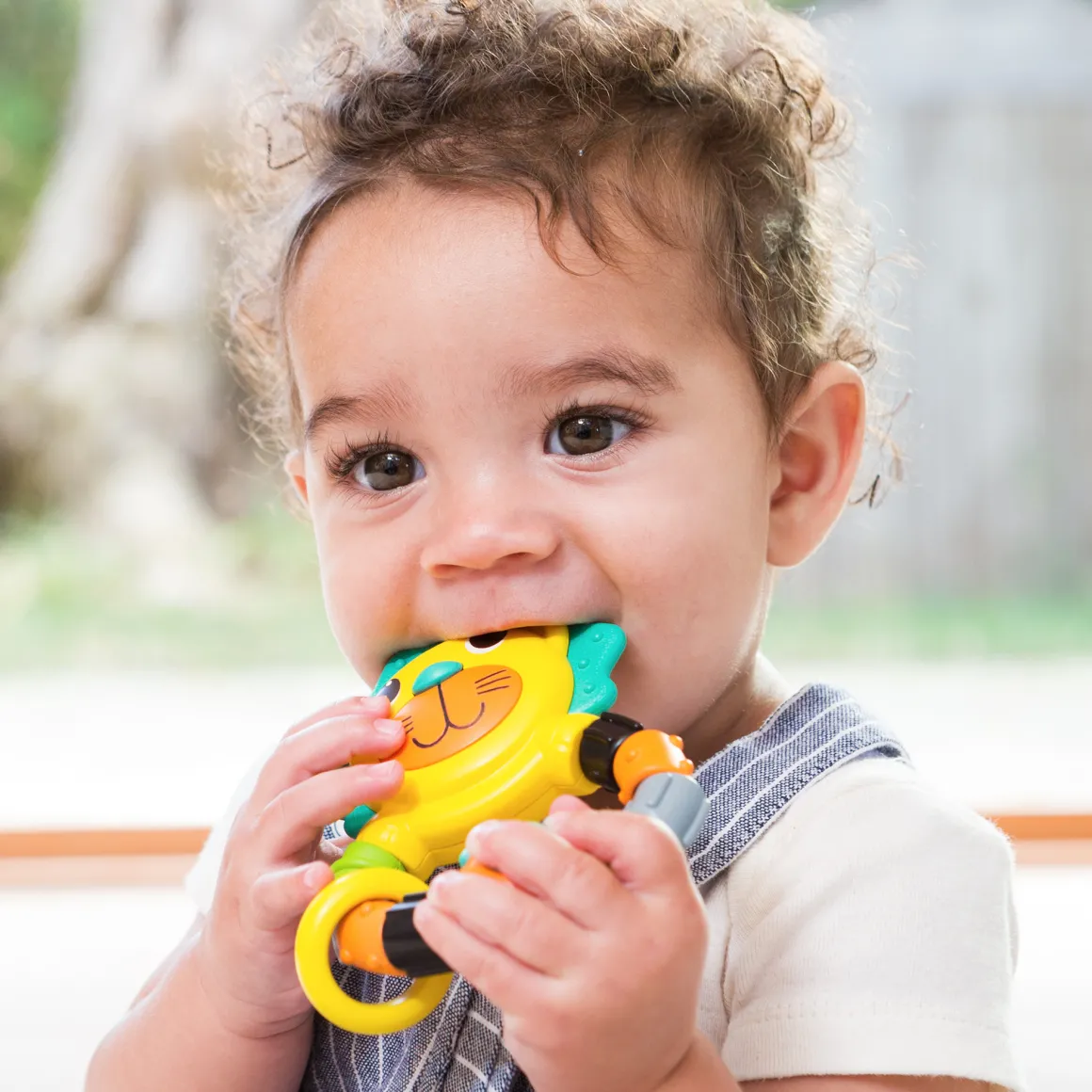 Dentaruolo super colorato a forma di leone.