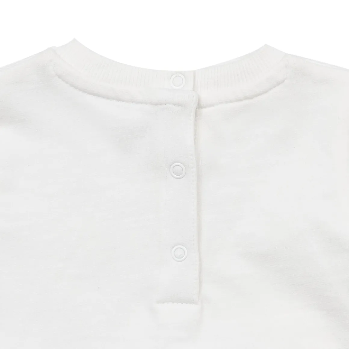 Casual ferlpa da bambina. Il capo si sviluppa in total bianco panna con stampa grande sul davanti. La vestibilità è morbida e pratica grazie alla ai bottoni a clip sul retro. La felpa da bambina è adatta a occasioni casual e facilmente combinabile. Accessori non in vendita. La confezione contiene solo il capo d’abbigliamento