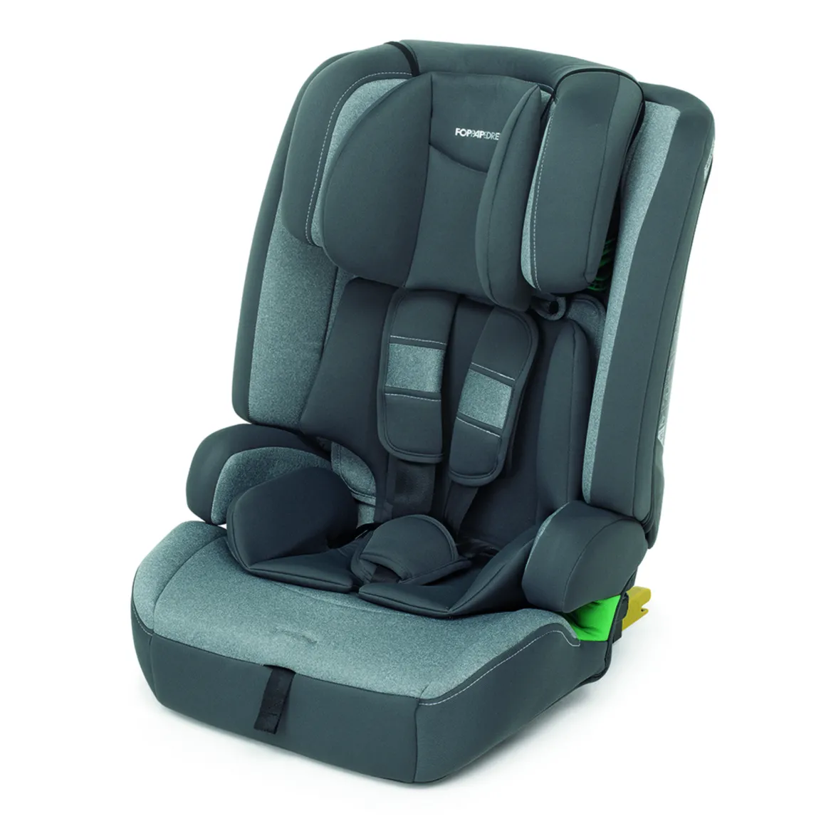 Test di impatto laterale Safe Body Protection e ulteriore protezione integrata Comfort Kid Pad. Ha doppia omologazione di aggancio Dual Fix, con o senza Isofix, da 100 a 150 cm di altezza del bambino.
