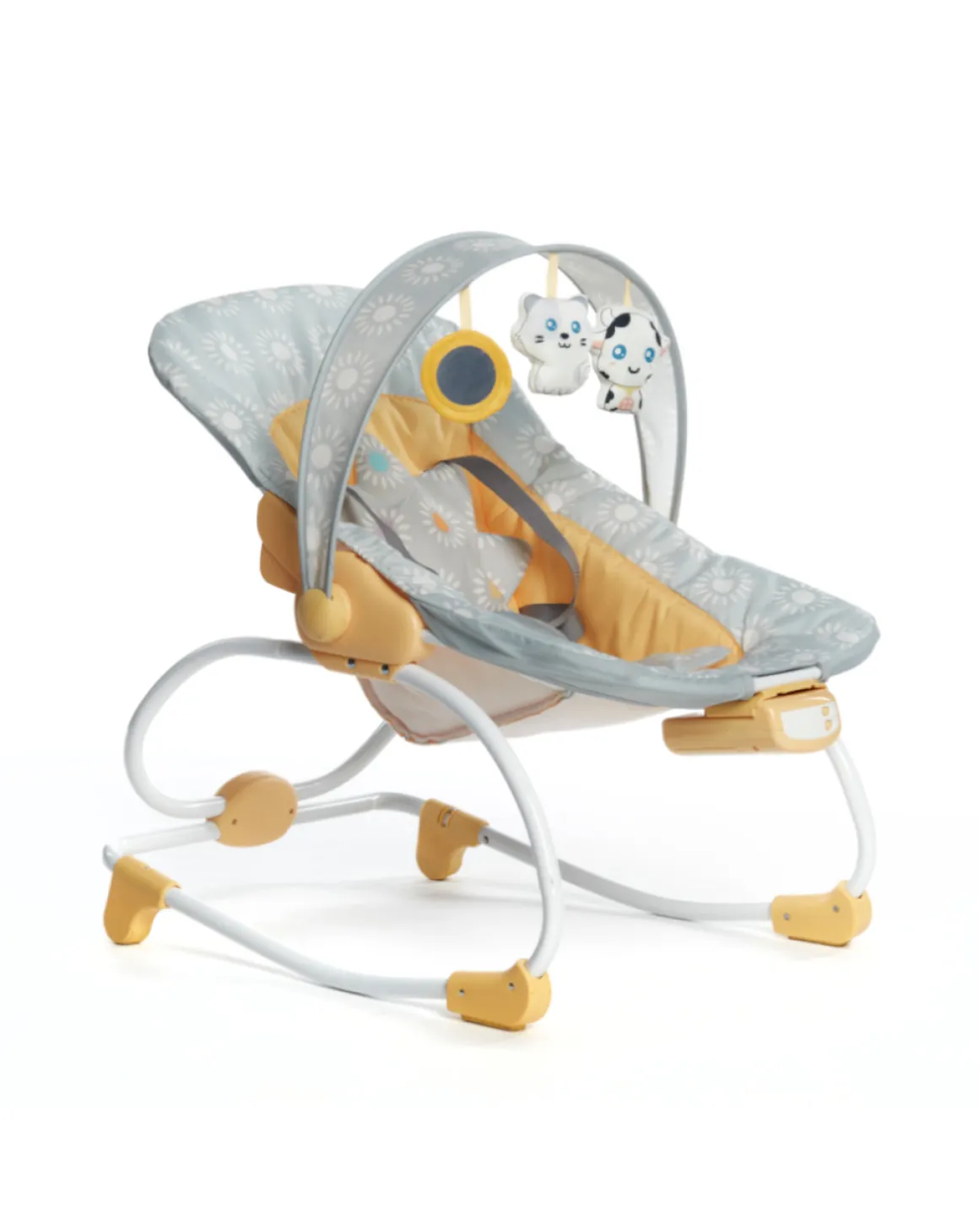 Lo schienale reclinabile, la fodera in morbido tessuto e al soffice riduttore sagomato, garantiscono la massina comodità. La funzione dondolo e la leggera vibrazione aiuteranno il bambino ad addormentarsi.