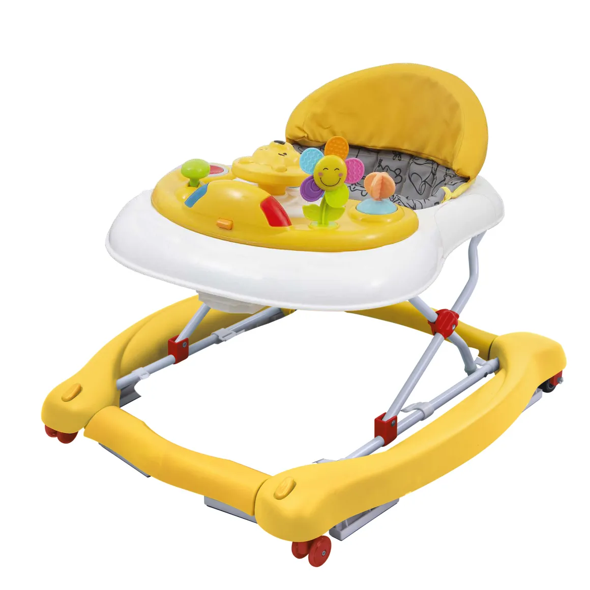 Girello con giochi e sedile imbottito, per aiutare il tuo bambino ad imparare a camminare divertendosi. Funzione dondolo e funzione primi passi con regolatore della velocità.