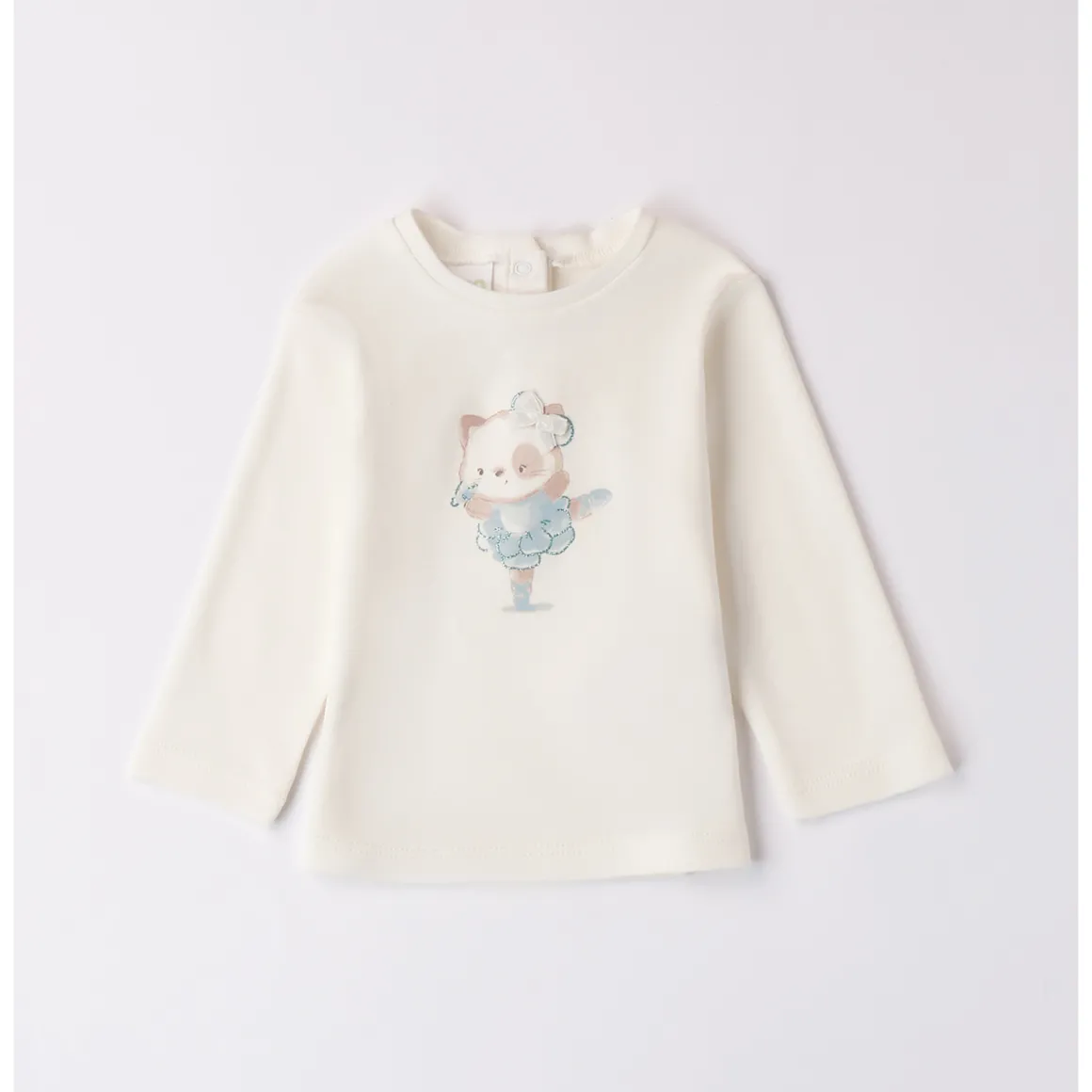 Maglia per bimba iDO 1-24 mesi realizzata in interlock 100% cotone. Il modello presenta apertura sul retro con bottoni a pressione per agevolare il cambio e la vestizione. L’articolo è realizzato in fantasia tinta unita con stampa frontale. Scopri tutta la selezione di Maglie bimba iDOMini!