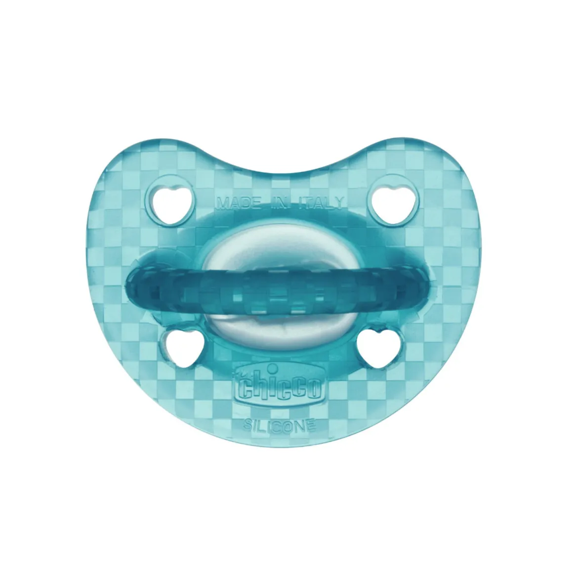 Gommotto realizzato completamente in morbido silicone, supporta la respirazione fisiologica e favorisce il corretto sviluppo della bocca del bambino. Esclusiva PhysioForma del gommotto Chicco: forma anatomico-funzionale esclusiva di tutti i ciucci Chicco, studiata per favorire e stimolare le funzioni vitali della bocca durante la suzione non nutritiva mantenendo il posizionamento fisiologico della lingua, alta sul palato. Extra morbido e delicato sulla pelle, Physioforma® Luxe è il primo ciuccio dotato di un moderno scudo testurizzato e caratterizzato da colori opachi diversi a seconda della misura.