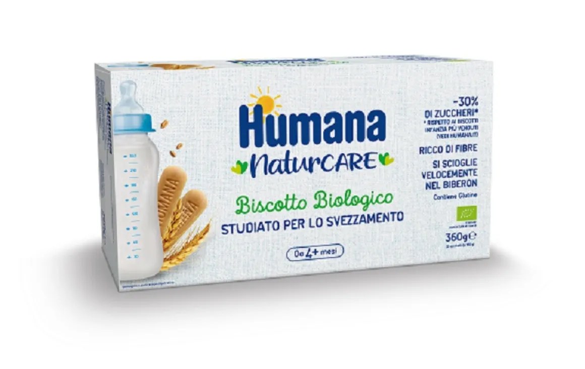 ll Biscotto biologico Humana è studiato specificatamente per lo svezzamento, è prodotto in Italia ed è preparato solo con ingredienti biologici selezionati e controllati e senza olio di palma. È adatto per iniziare a masticare prima dell’arrivo dei dentini e si scioglie velocemente nel latte.