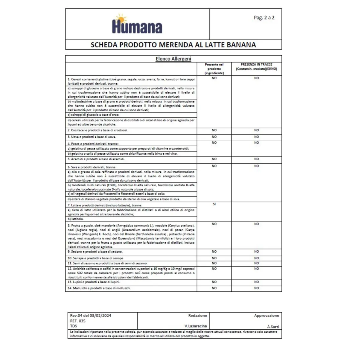 Ingredienti: latte intero 78%, purea di banana 10%, acqua, amido modificato, zucchero, proteine del latte, addensanti: pectina, farina di semi di carrube; aroma naturale, fermenti lattici inattivati.