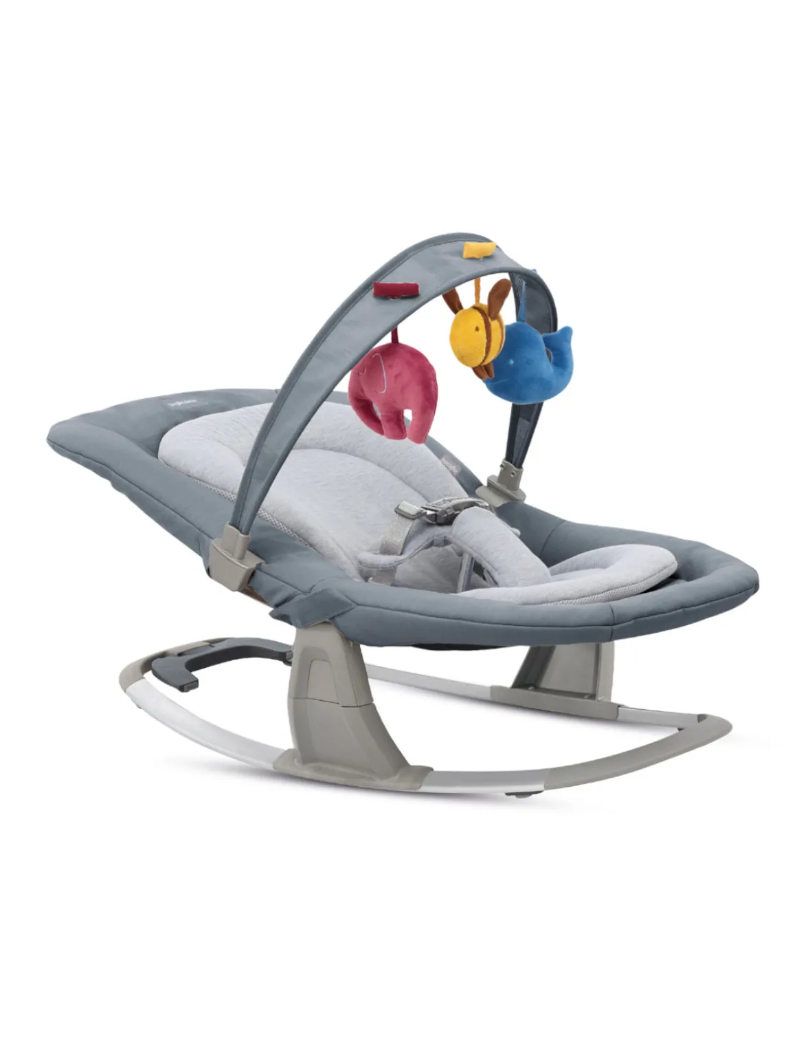 La sdraietta musicale ultra confortevole. Lounge è la sdraietta che abbraccerà il bambino nei suoi primi mesi di vita, donandogli una sensazione di benessere e protezione. Forma curvata del telaio progettata per garantire un dondolo dolce e armonico. Lo schienale è reclinabile in tre posizioni, per avere la posizione comoda in ogni momento. Imbottitura ampia e comoda con morbido riduttore per i primi mesi in maglina di jersey traspirante e fondo in rete 3D per una ottima circolazione dell’aria. Music box con 3 melodie musicali classiche e regolazione del volume. Stimola lo sviluppo cognitivo grazie alla barra dei giochi agganciabile in diverse posizioni con tre simpatici personaggi, dai colori, suoni ed elementi tattili ottimi. Dimensioni: 47 x 22 x 85 cm (larghezza x altezza x profondità). Peso: 3.34 kg.