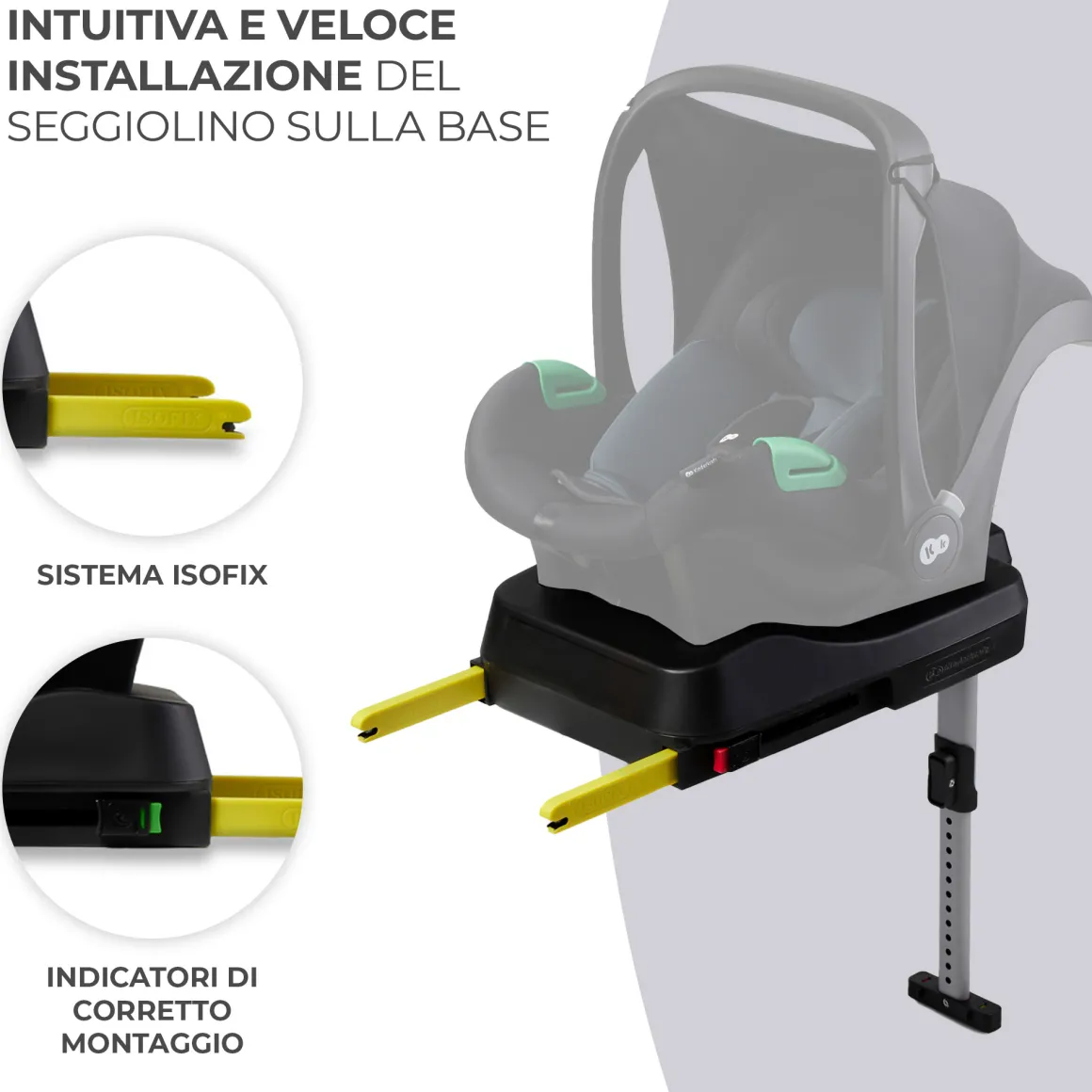 L’installazione della base occupa pochissimi istanti. È una grande facilitazione per i genitori, che usano spesso la soluzione TRAVEL SYSTEM, cioè, possibilità di attaccare il seggiolino auto sul telaio del passeggino utilizzando gli adattatori universali – la base viene installata una volta sola per poter installarci il seggiolino sempre in un solo attimo.