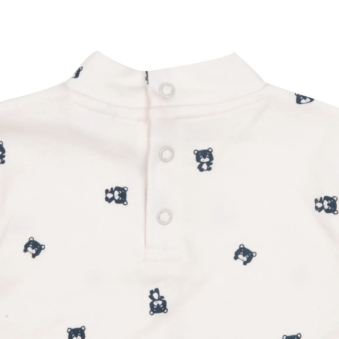 Maglia modello lupetto interlock a maniche lunghe da bambino. Il capo si presenta in colorazione total bianco panna con stampa allover “orsetti”. La vestibiilità è morbida e pratica grazie ai bottoni a clip sulla schiena. Il capo semplice è facilmente combinabile. Accessori non in vendita. La confezione contiene solo il capo d’abbigliamento