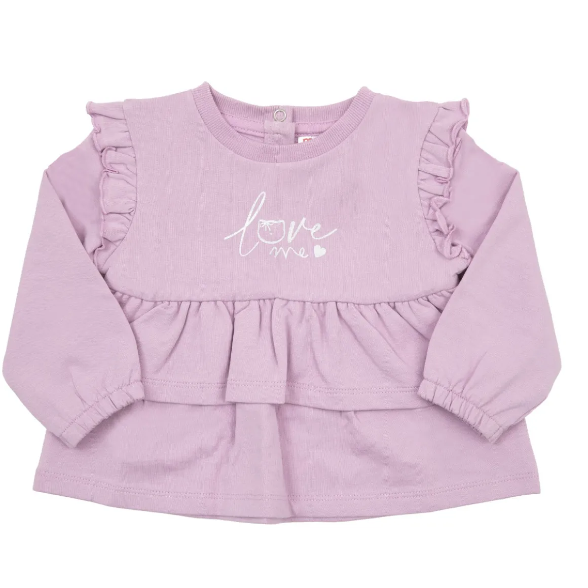 Casual t-shirt manica lunga jersey da bambina. Il capo si sviluppa su base rosa panna con scritta piccola sul davanti. Modello con rouches sulle spalline e a metà lunghezza. La vestibilità è morbida e pratica grazie ai bottoni a clip sul retro. La maglia da bambina è facilmente combinabile per vari look.Accessori non in vendita. La confezione contiene solo il capo d’abbigliamento