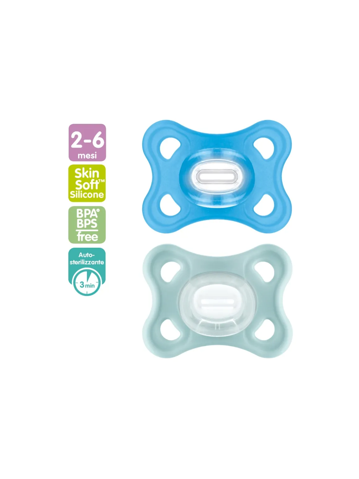 Il ciuccio MAM Comfort risponde alla norma EN 1400 ed è senza BPA e BPS. Dai 6 mesi il proseguimento naturale è con il ciuccio MAM Perfect, con tettarella ultra sottile e flessibile o con il ciuccio MAM Supreme, che coniuga alla tettarella ultrasottile e flessibile una mascherina con ampi fori di ventilazione adatta per le pelli più sensibili. MAM Perfect e MAM Supreme sono stati sviluppati con l’aiuto di ortodontisti e pediatri e testato clinicamente: il collo della tettarella in media il 60% più sottile3 e 4 volte più flessibile3 dei normali succhietti, permette una chiusura più naturale della bocca del bambino, riducendo il rischio di disallineamento. Inoltre MAM Supreme ha una mascherina con ampi fori di ventilazione adatta per le pelli più sensibili.