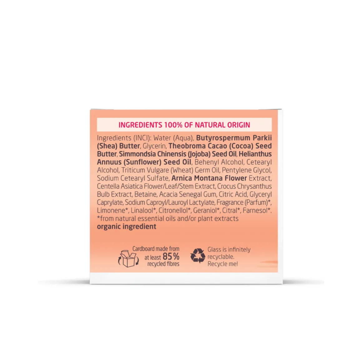 La formula nutriente è realizzata con con ingredienti di origine naturale, quali estratti di centella asiatica, burro di karité biologico, ricco burro di cacao e preziosi oli vegetali. Formato: 150 ml.