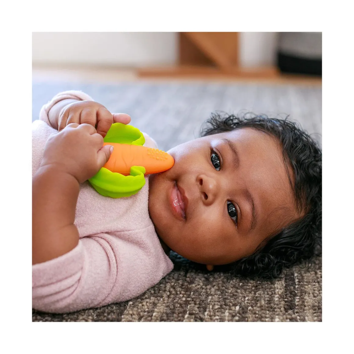 Questo massaggiagengive a forma di carota in silicone è la soluzione perfetta per lenire le gengive delicate del tuo piccolo e offrire sollievo durante la dentizione.