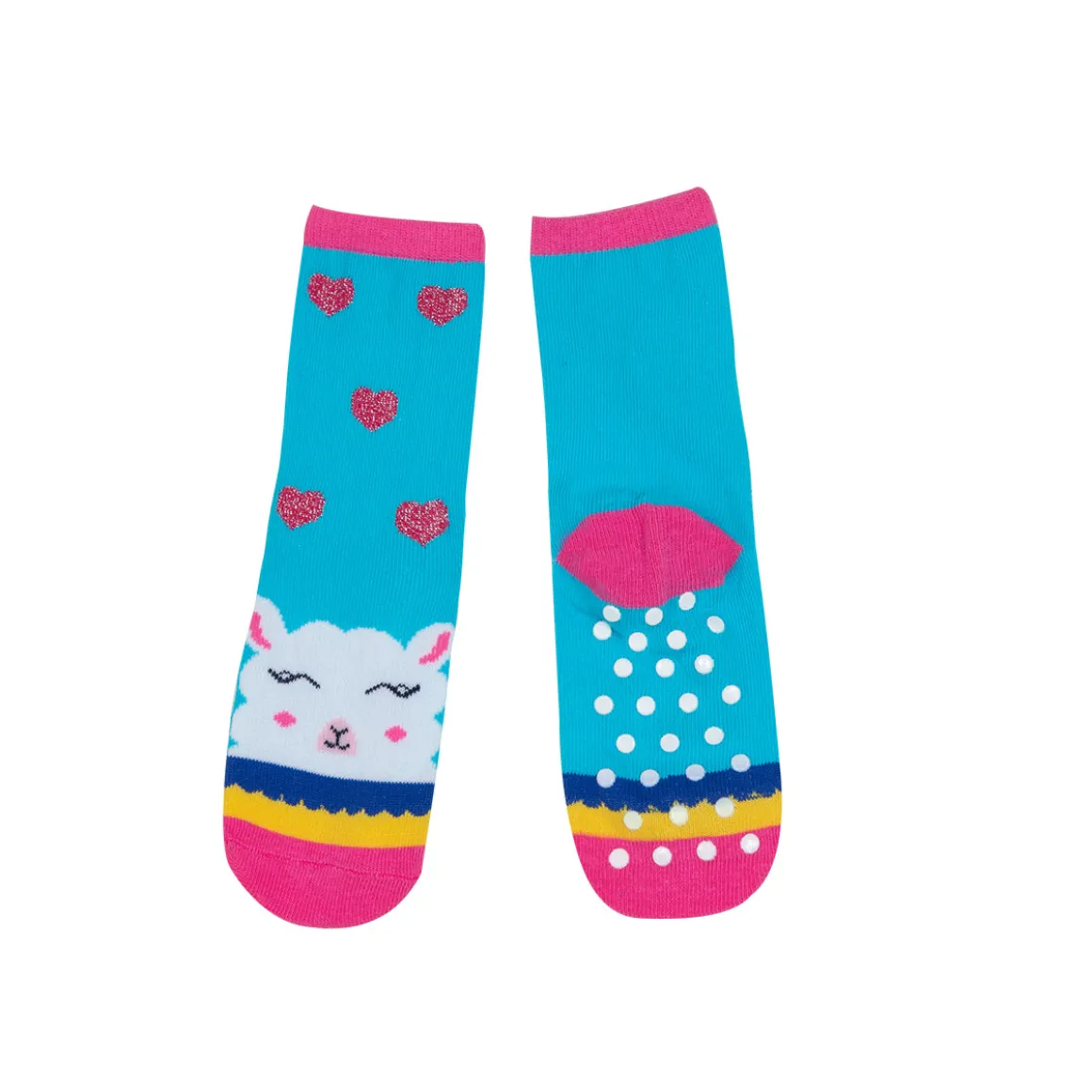 Romantico calzino antiscivolo con gommini antisdrucciolo in pack per 1, multicolor con disegno di un tenero lama. Gli antiscivolo sono morbidi e confortevoli , indispensabili per l’asilo e perfetti per stare in casa.