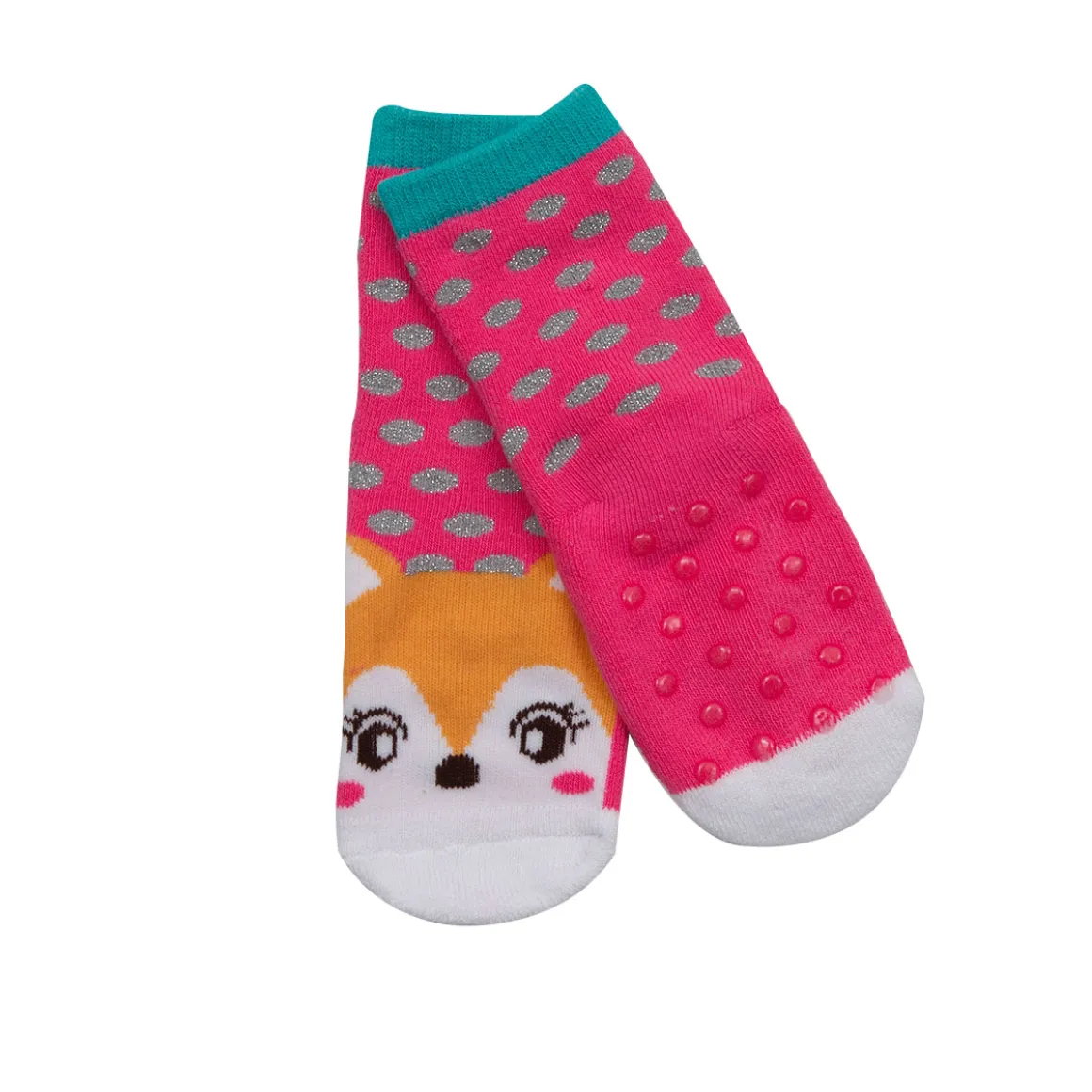 Divertente calzino antiscivolo con gommini antisdrucciolo in pack per 1, motivo volpina e pois lurex . Gli antiscivolo sono morbidi caldi e confortevoli .Indispensabili per l’asilo , perfetti come i dea regalo e per le serate in casa . Modello disponibile in un’atra variante colore.
