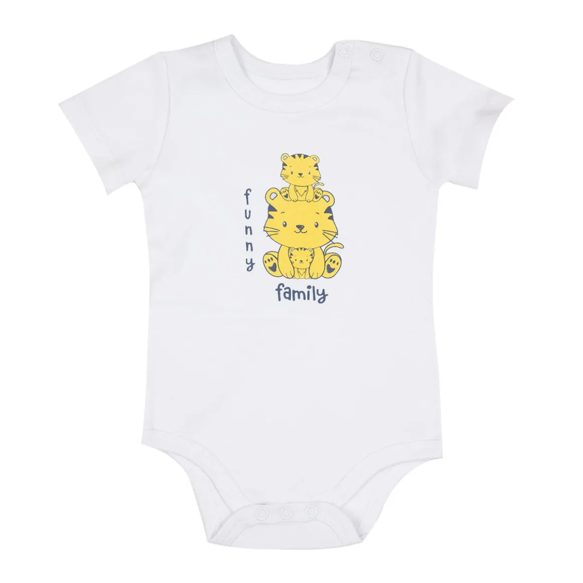 Delizioso body caldo cotone con stampa funny a manica corta. Coordinabili con le tutine dello stesso tema. Oltre ai comodi bottoncini sulla spalla presenta una comoda apertura entrogamba con bottoncini a pressione per facilitare il cambio pannolino. Vestibilità comoda.