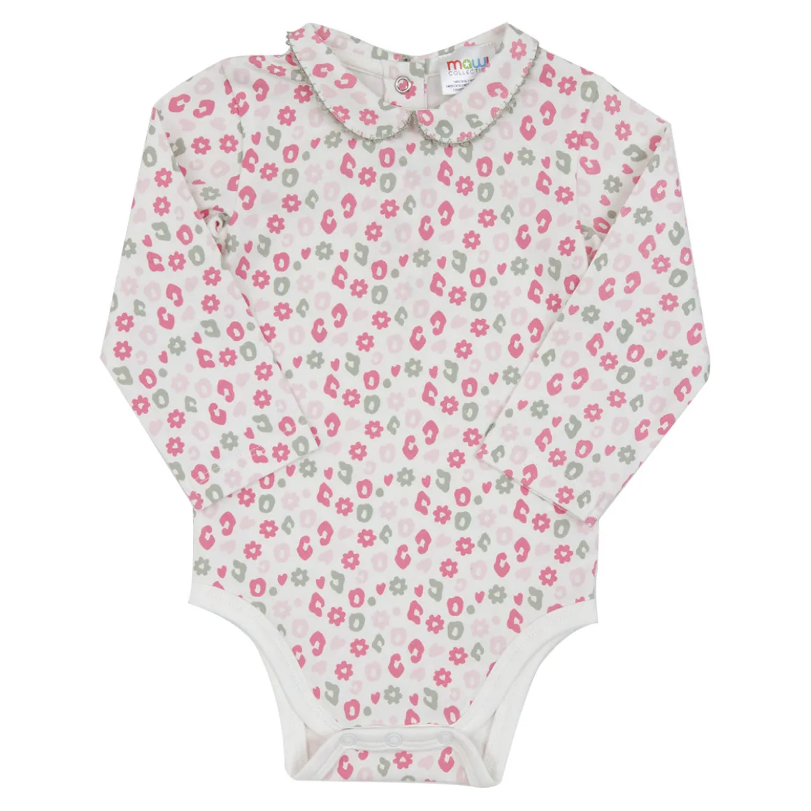 Body jersey stretch con colletto a bordo ricamato. Stampa fantasia multicolor. Il capo presenta una comoda apertura entrogamba con bottoncini a pressione per facilitare il cambio pannolino. Vestibilità comoda. Un modello super classico indispensabile per il guardaroba della tua bimba..