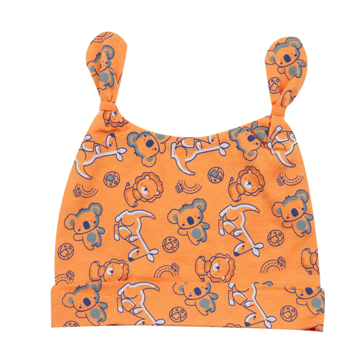 Divertente cuffietta con nodini fantasia safari fondo arancio. erfetto per le giornate primaverili ed estive. Vestibilità comoda