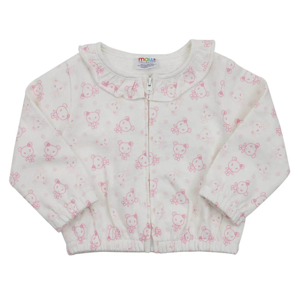 Cardigan in felpa con una dolce stampa fantasia a fondo panna. Il capo è zippato, con collo a giro e arricchito da rouches per renderlo ancora più femminile . Un capo indispensabile nel guardaroba della tua bimba. Coordinabile con i pantaloni in felpa dello stesso tema.